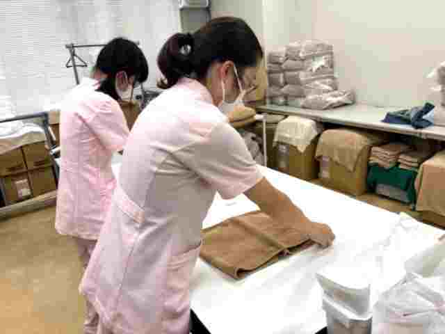 実習中は先輩スタッフが一緒に作業しながらタオルのたたみ方や軽作業、